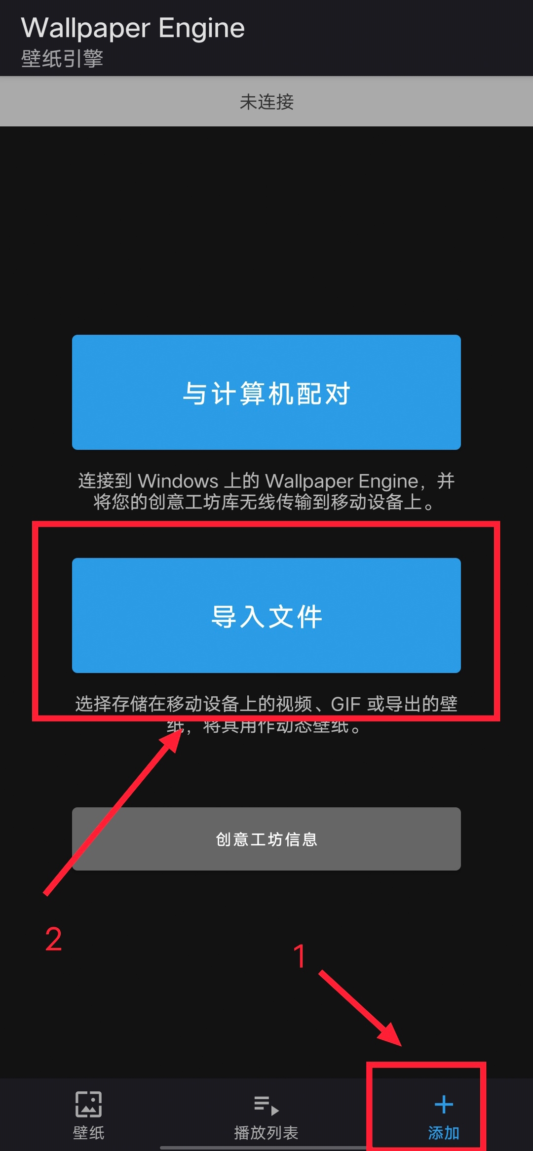 Download the MPKG file to your device, open Wallpaper Engine, click "Add" in the bottom right corner, then click "Import File"